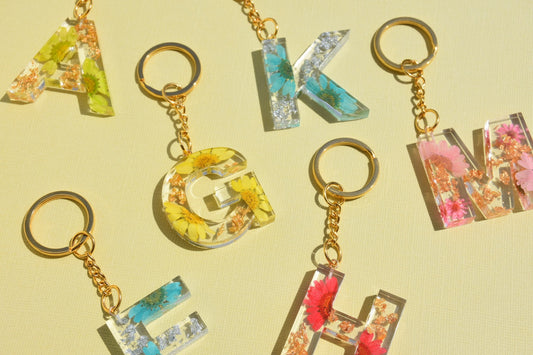 Dried Flower & Gold Leaf Keychain