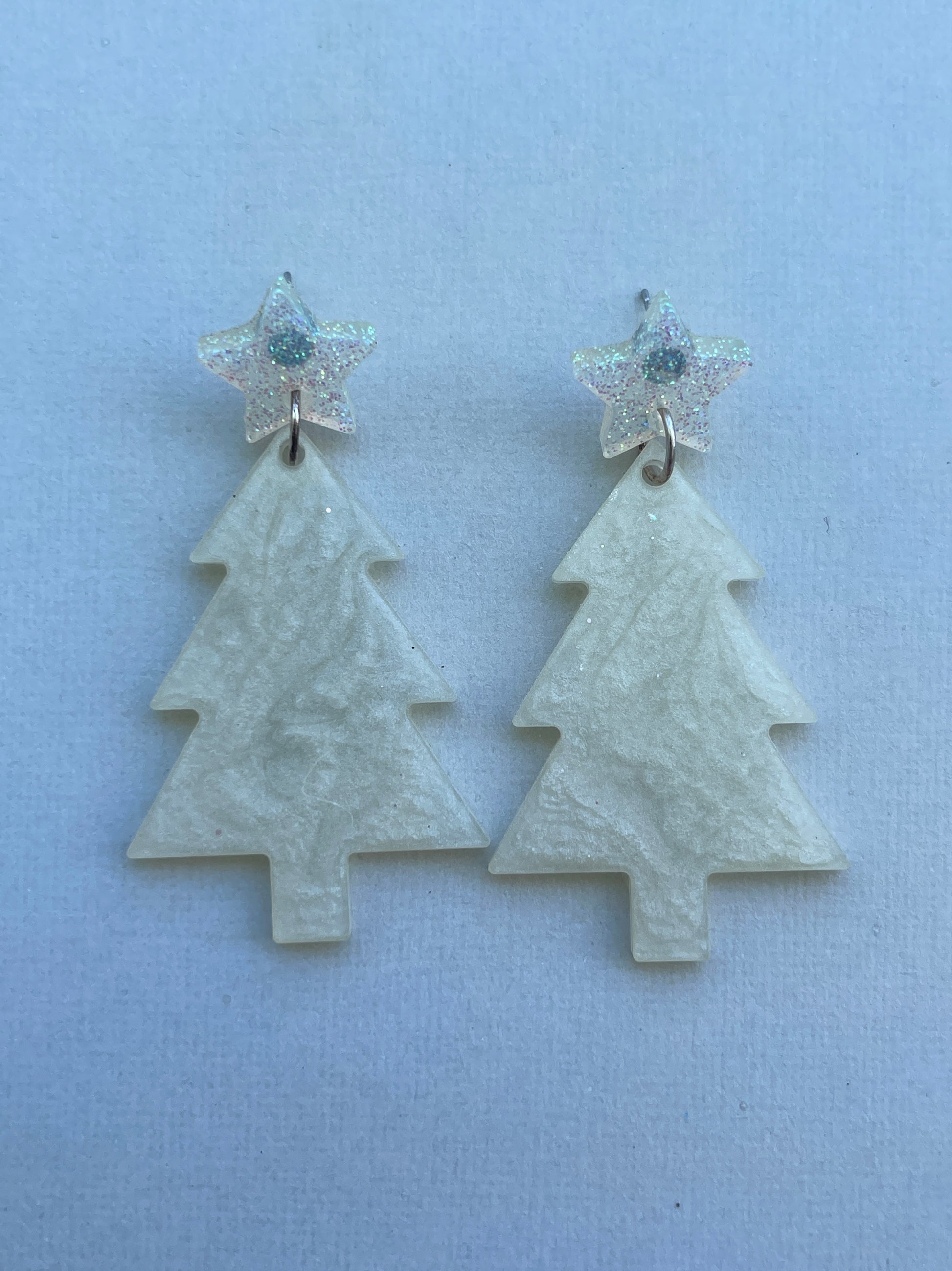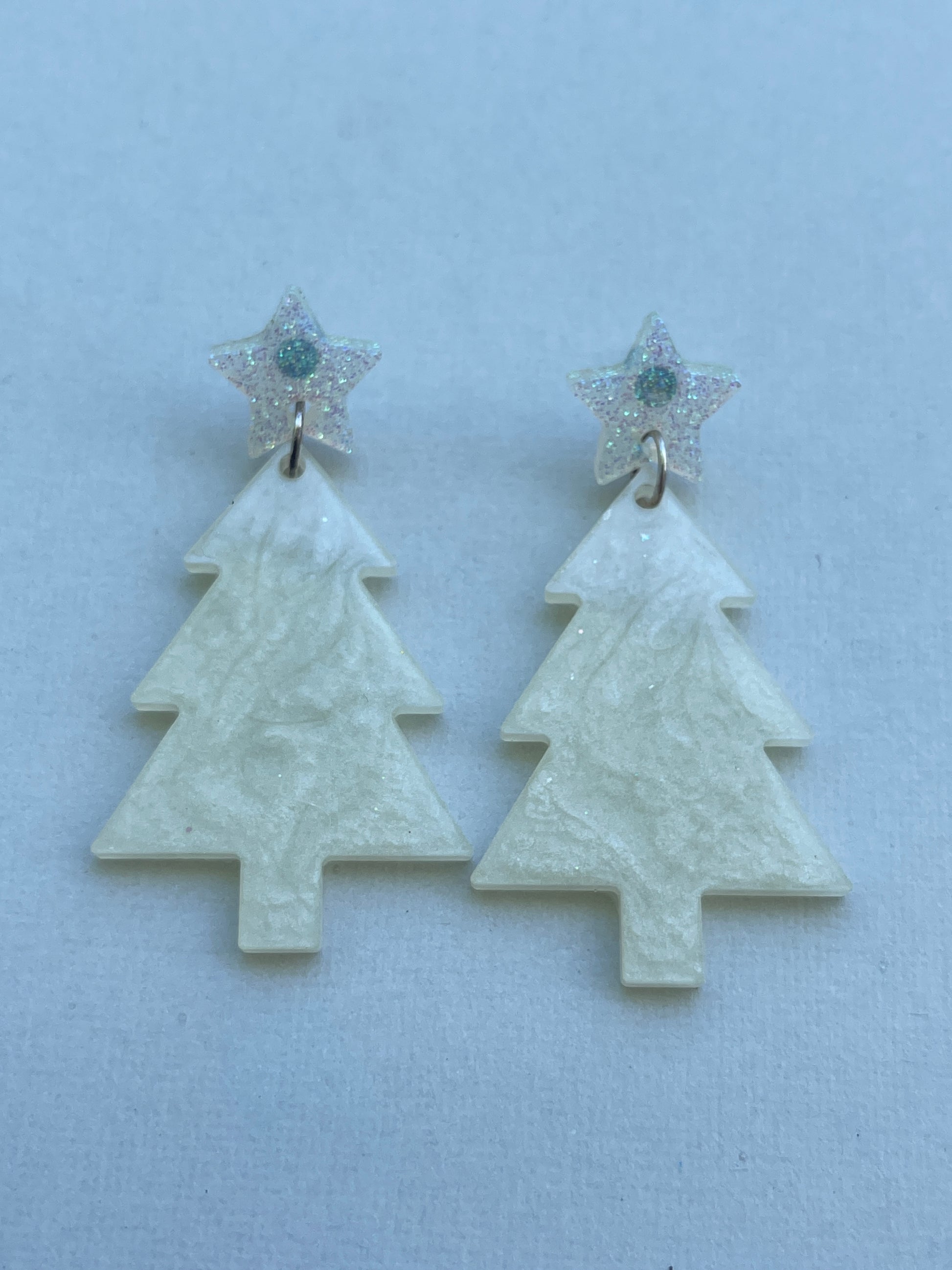 Shimmery pearl mica powder Christmas tree with a star stud topper to match.
