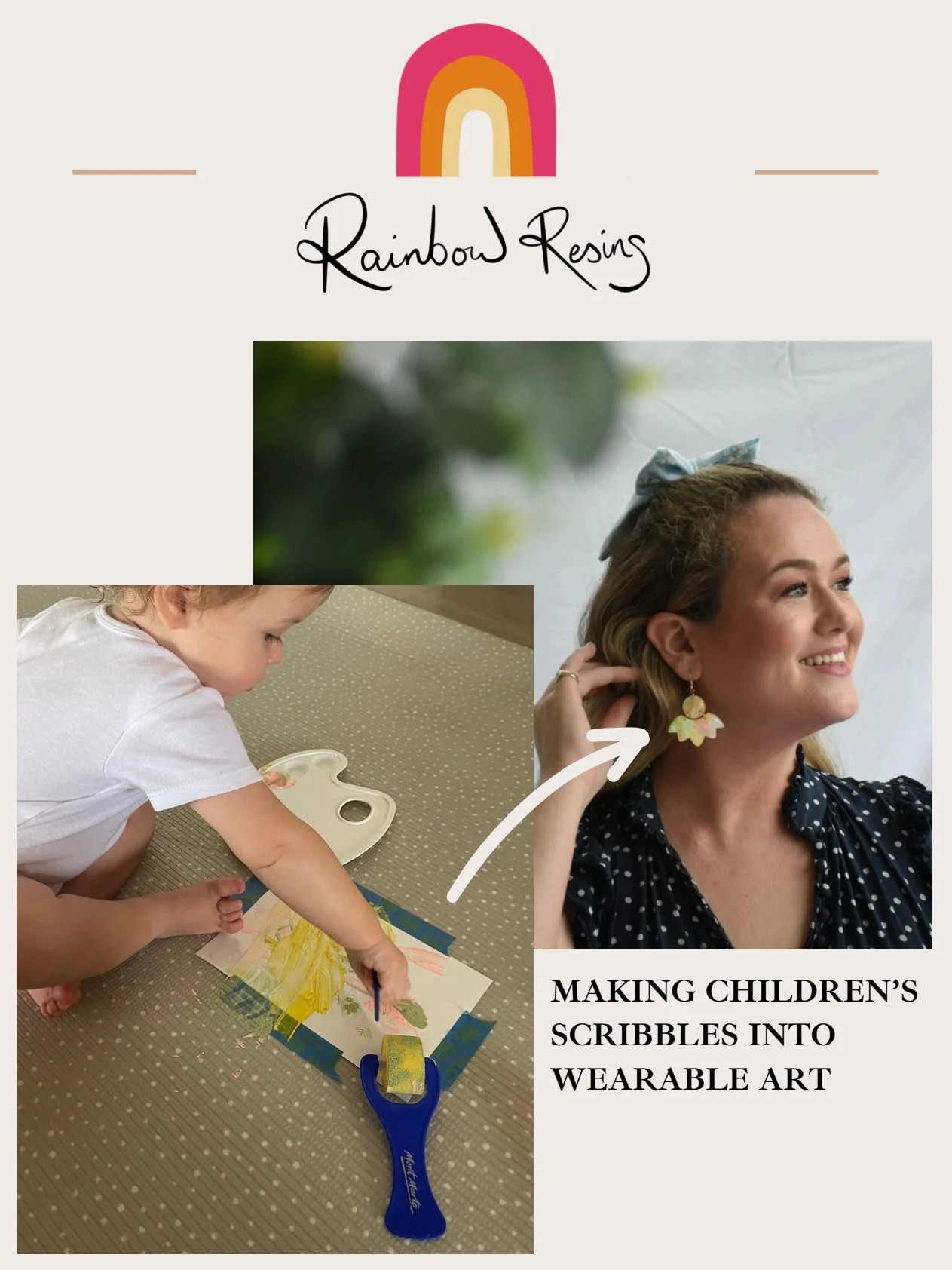 Wear the most unique earrings in the world, because they’re made by your own child! Using a very specific resin paper to do the artwork on, I then seal it in resin and create the earring shapes of your choice. This is the such a sentimental way to keep your children’s artwork forever and get some awesome statement pieces at the same time.