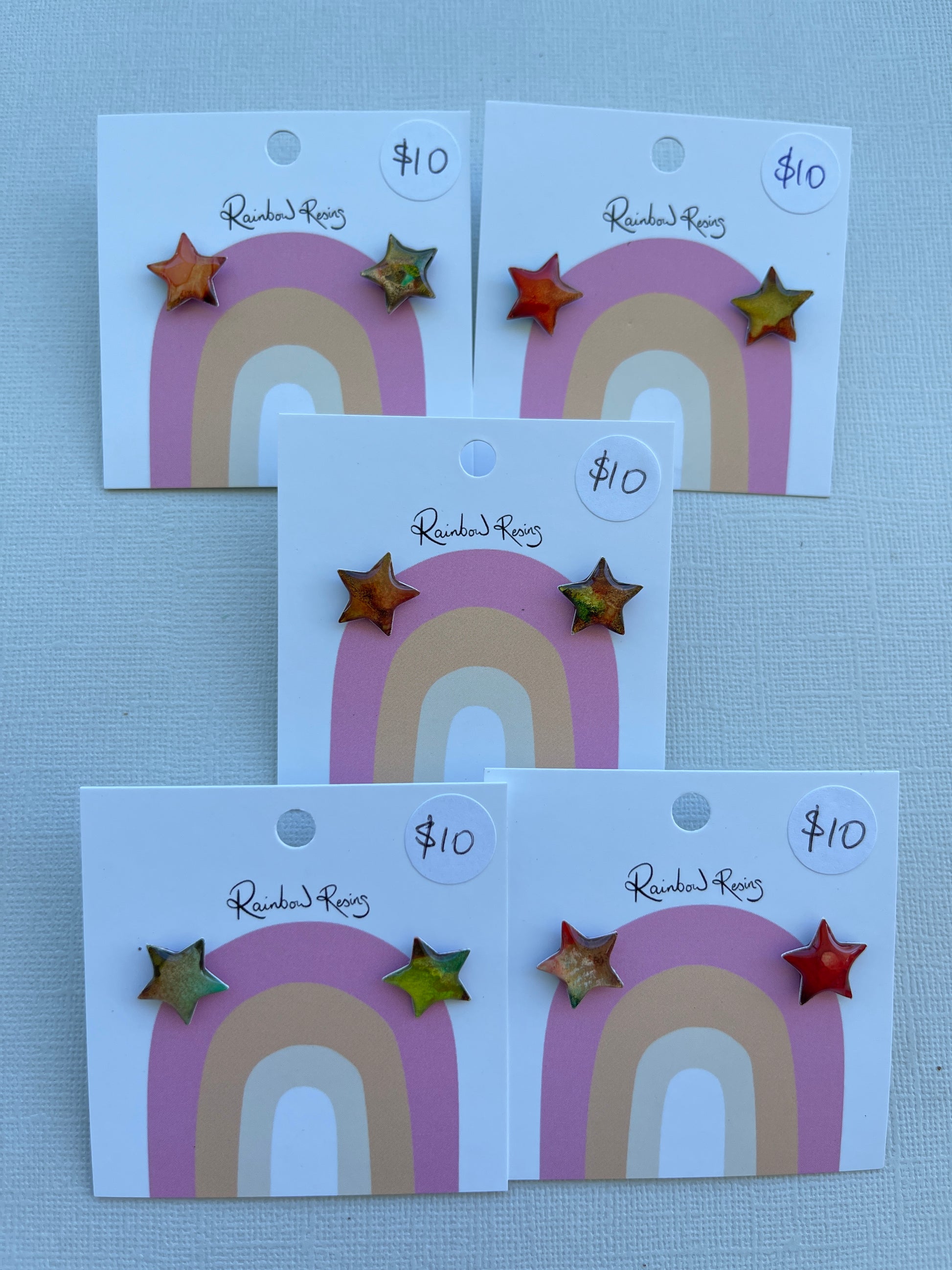 Stud findings are made from surgical stainless steel for sensitive lobes! All Rainbow Resins pieces are handmade from the highest quality resin and surgical steel for sensitive lobes. Colours may vary slightly to images, as these pieces are custom made to order if not available in stock. Please endeavor to keep your resin out of direct sunlight and heat, as it can distort the resin and pigment within it.