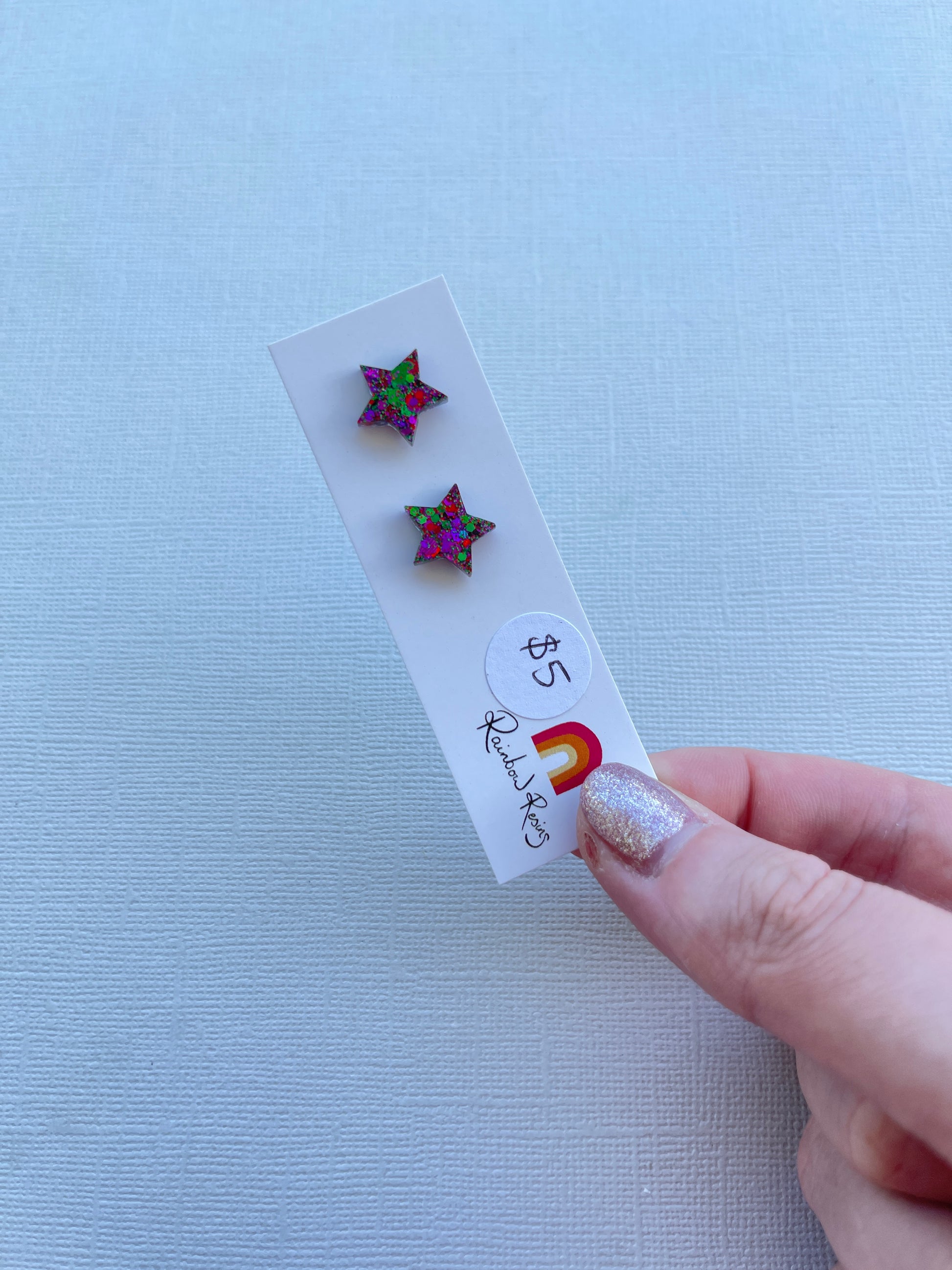 Sparkly glitter resin stud earrings approximately 1cm in height.
